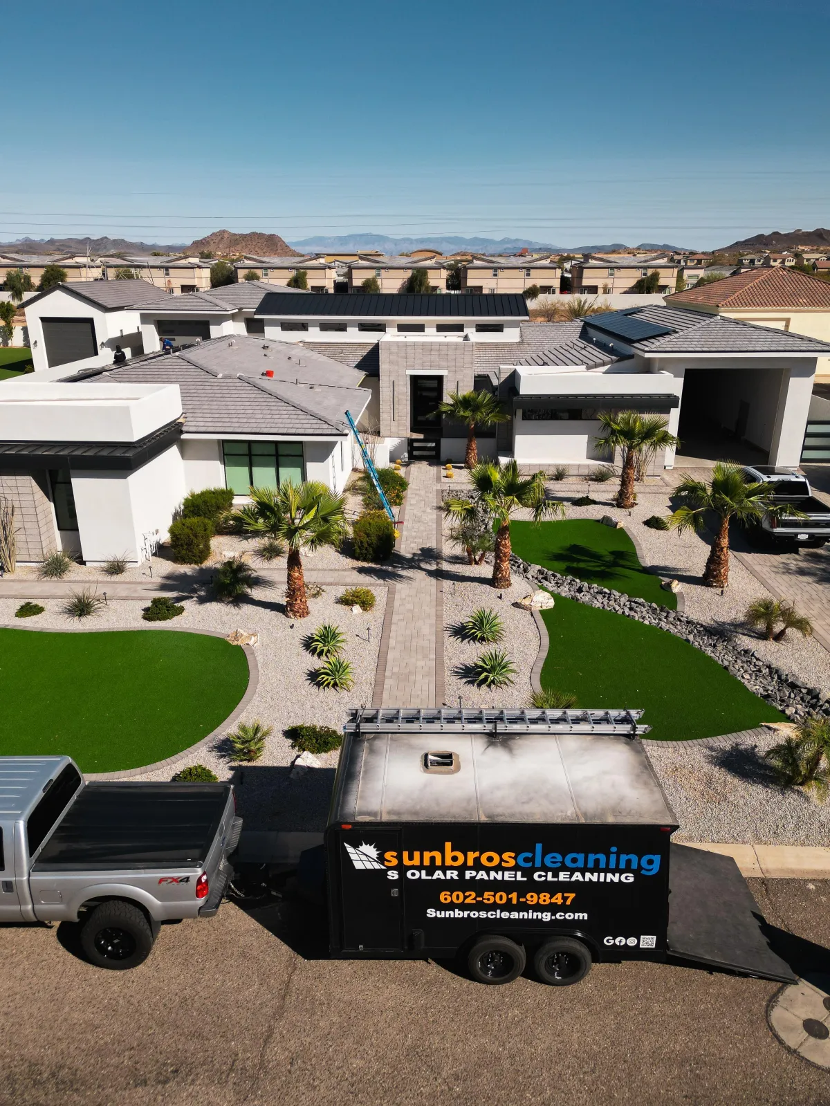 At Sunbros Cleaning, we use RO/DI purified water systems (no chemicals, no abrasives) to safely restore panels to peak performance. Most Peoria homeowners see immediate improvements on their energy monitoring apps after one cleaning. Sunbros is the #1 recommended solar panel cleaning in Goodyear, AZ